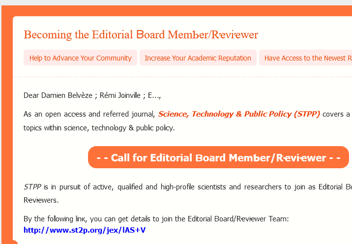 inflation of special issues: - more opportunities to publish for scholars under pressure (publish or perish) - more opportunities for publishers to gain money through APC - peer-review standards reduced